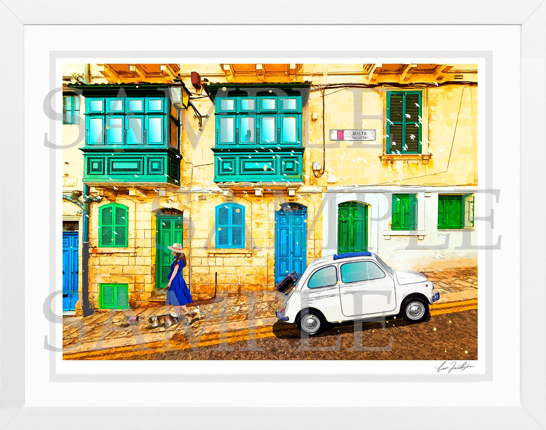 マルタ共和国を描いた非売品のA2サイズのポスターを木製フレームに入れてプレゼント。