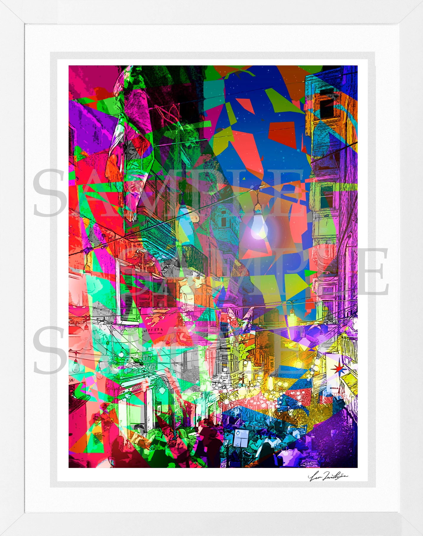 夜な夜な街に繰り出しては楽しい時間を過ごしています。そんな空気感を描いたアート作品。