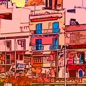 マルタ共和国の首都バレッタのビトリオサ・ヨット・マリーナから見た夕暮れのマリーナ。