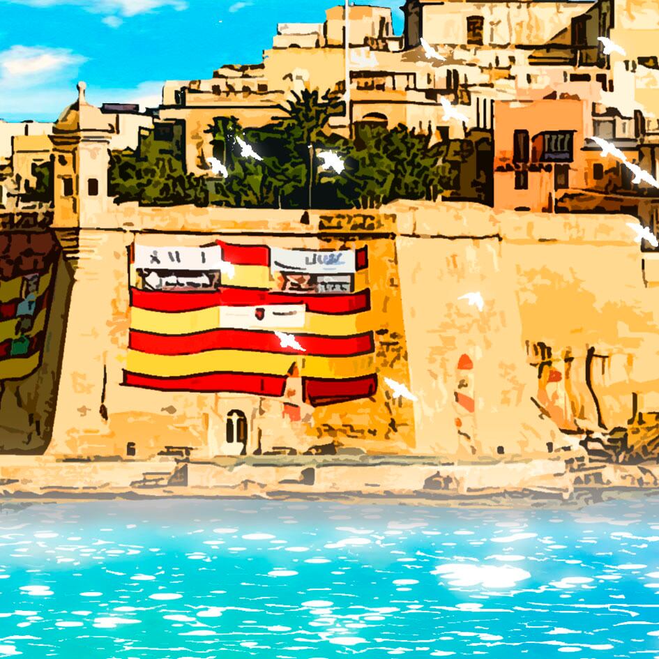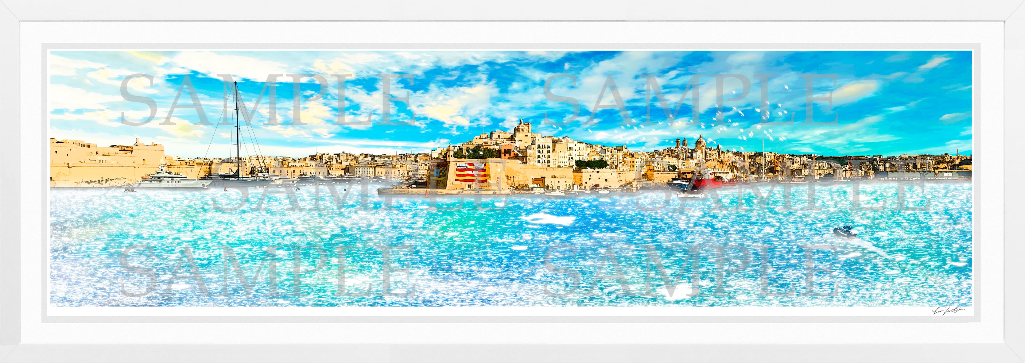 いた作品。水面には美しい夏のマルタの青空の反射を描いています。